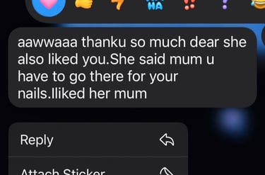 With over a year of hands-on experience, I’ve built my home-based studio to be a welcoming space where clients can relax and enjoy the process. From elegant minimalist looks to bold, detailed designs, my goal is always to make your nails stand out while staying healthy and strong.